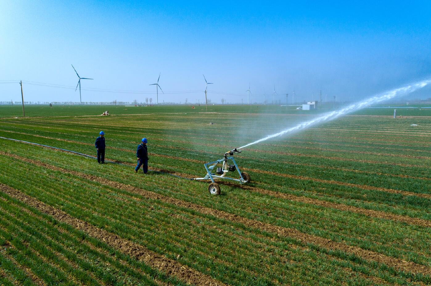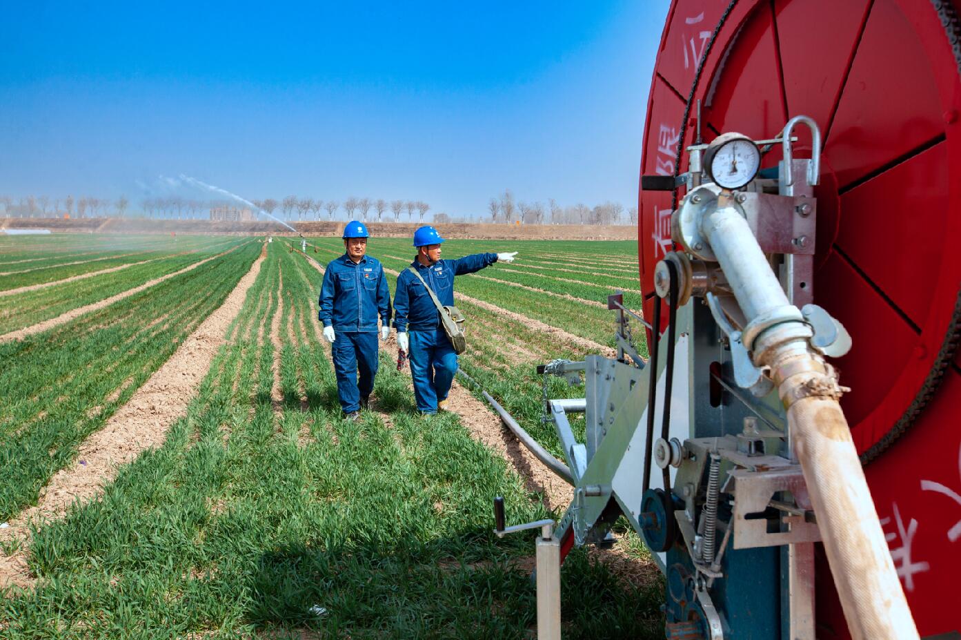 春撫萬物,水潤“糧倉”。在“豫北糧倉”滑縣麥田里,噴灌機正在努力工作,源源不斷地將清水撒向青翠的麥苗,陽光照射下水霧七彩斑斕,一副中原糧倉春灌生產的絕美畫卷。在這幅畫卷中,電力工作人員正在開展春灌保供電服務。