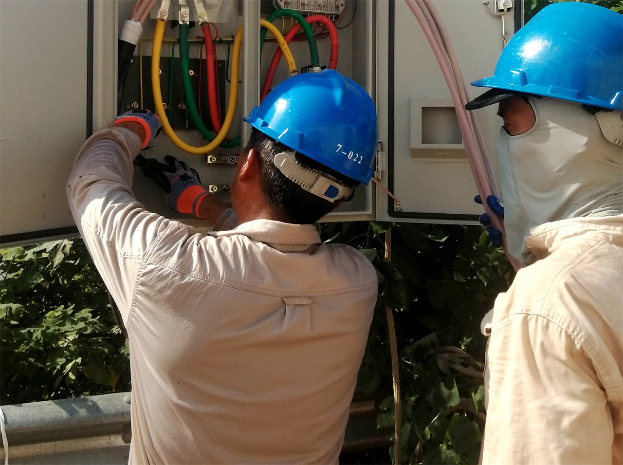 該村干部表示,當(dāng)天與供電所聯(lián)系后,早上7點(diǎn),供電所就派出4輛供電搶修車和10多名電工到達(dá)現(xiàn)場。根據(jù)現(xiàn)場故障搶修需求,為保證電站正常供電,需安裝增容配電箱和新架設(shè)供電線路。為此,電工們克服當(dāng)日高溫天氣,不間斷工作,安裝架線。經(jīng)過3個(gè)多小時(shí)的努力,100多米的供電線路被成功架通,恢復(fù)了正常供電。當(dāng)村民們看到電站水泵嘩嘩地流向稻田灌溉渠溝時(shí),紛紛向烈日下忘我工作的電工們致謝,為全心全意為群眾排憂解難的供電所點(diǎn)贊。(通訊員:高曉平、周志紅)