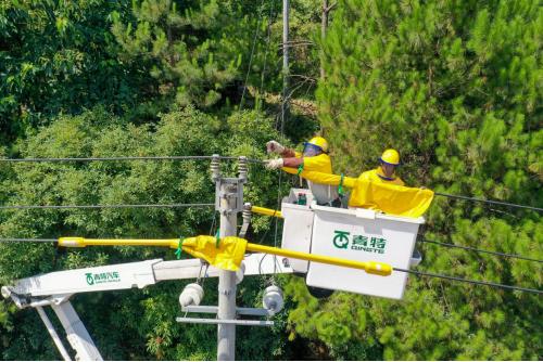 在另一邊的作業(yè)現(xiàn)場(chǎng),由于電桿處于樹林地帶,施工環(huán)境復(fù)雜,為工作增添了諸多難題,運(yùn)檢部工作人員只能在電桿附近空曠地帶,操作吊車將數(shù)百公斤重的變壓器與綜合配電箱吊上電桿。在吊車指揮員的協(xié)助下,順利將老舊的設(shè)備更換下來(lái),隨后4名工作人員開展進(jìn)出電纜連接、更換電桿刀閘工作,整個(gè)過(guò)程緊張、有序,不放過(guò)任何一個(gè)細(xì)節(jié),保障每一項(xiàng)步驟都準(zhǔn)確無(wú)誤。最終經(jīng)過(guò)長(zhǎng)達(dá)6小時(shí)的艱苦鏖戰(zhàn),在雙方工作人員的共同努力下,本次作業(yè)圓滿完成。