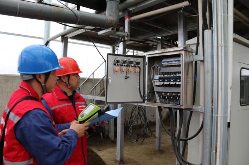 國(guó)網(wǎng)蠡縣供電公司工作人員對(duì)養(yǎng)殖場(chǎng)糞污處理設(shè)備進(jìn)行測(cè)溫檢查 龐亞杰 攝