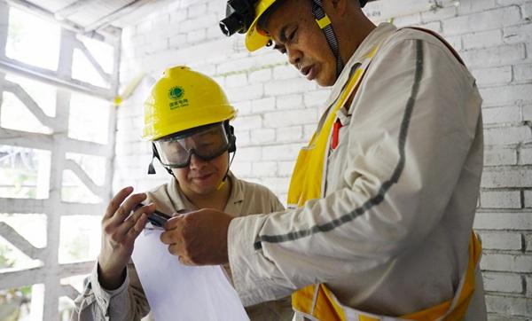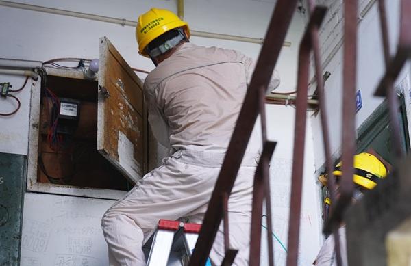 8月6日,網格班員工秦甫濤和同事頭戴安全帽,手持工具箱,肩扛電表箱,快步走進永川郵電小區(qū)。