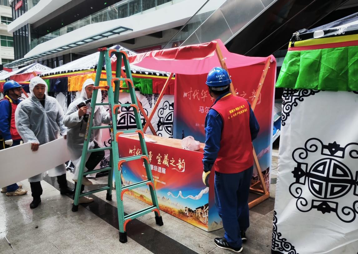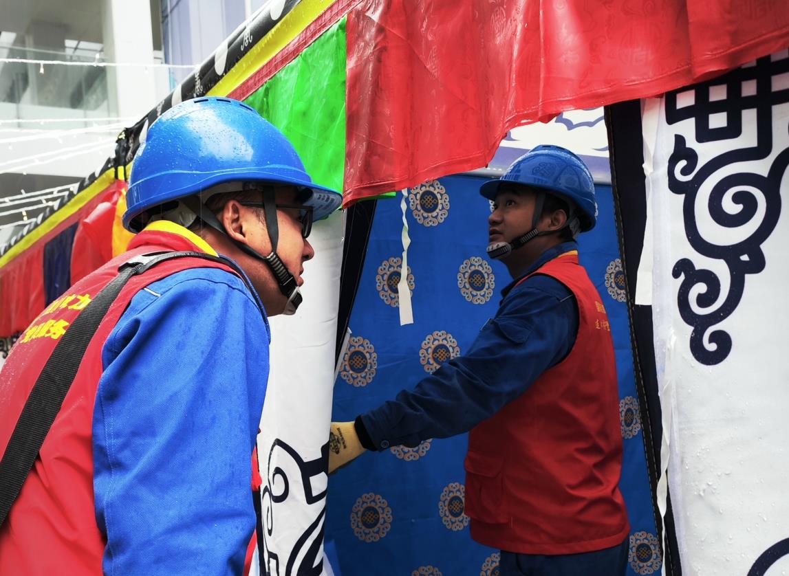 隨著活動的臨近,連心橋共產(chǎn)黨員服務(wù)隊的工作人員還全力協(xié)助主辦方讓每個舞臺、每個音響設(shè)備、每個話筒、每個非遺展區(qū)通電。他們以專業(yè)的技術(shù)和高效的工作作風(fēng),確保舞臺燈光璀璨、非遺展區(qū)光彩照人。他們的努力為活動增添了絢麗的色彩,讓游客們能夠更好地欣賞到馬爾康的文化魅力。