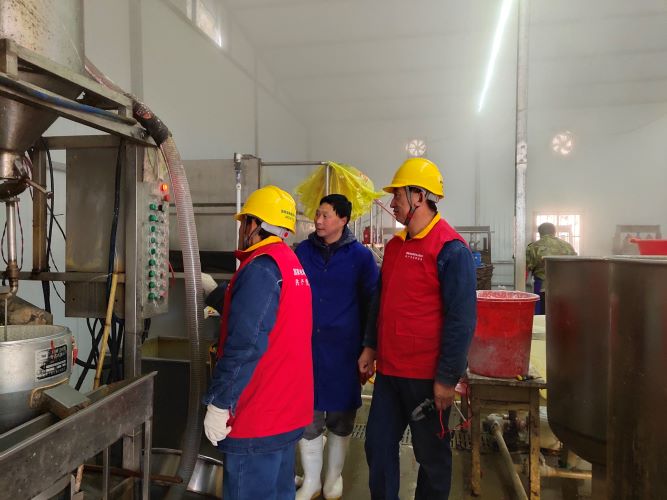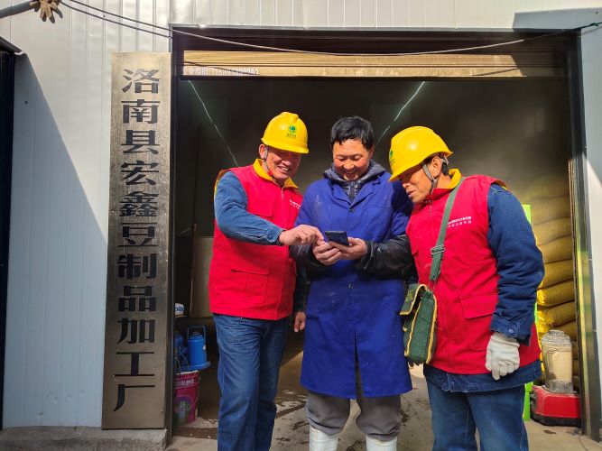 中國電力網(wǎng)訊(通訊員 李孟仁) 在年末生產(chǎn)的關(guān)鍵時期,企業(yè)用電保障至關(guān)重要。12月 26日上午11時,陜西商洛洛南縣景村鎮(zhèn)油泉村的宏鑫豆制品加工廠內(nèi)一片繁忙景象。此時,國家電網(wǎng)陜西電力張思德共產(chǎn)黨員服務(wù)隊(duì)(商洛洛南分隊(duì))景村供電所小隊(duì)隊(duì)員何清珍、張平亮,身著紅馬甲、頭戴安全帽,背著工具包,帶著萬用表、筆記本和微信群這“三件寶”,走進(jìn)了生產(chǎn)車間檢查用電設(shè)備。