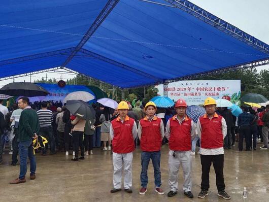 9月24日,新田縣2020年“中國農(nóng)民豐收節(jié)”暨首屆“新田蔬菜節(jié)”慶?;顒釉邶埲?zhèn)東升村正式拉開序幕,國網(wǎng)新田縣供電公司共產(chǎn)黨員服務(wù)隊堅守活動現(xiàn)場,全程值守,確保供電萬無一失。