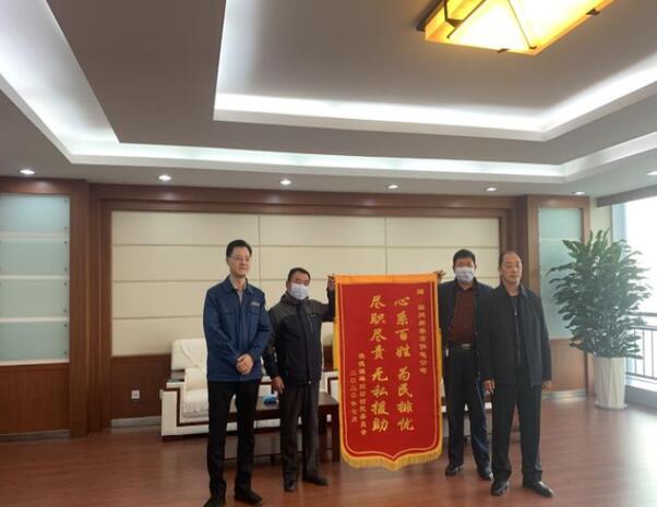 11月25日一大早,樓德鎮(zhèn)埠前村村民將一面繡有“盡職盡責(zé)無(wú)私援助心系百姓為民排憂”的錦旗送到國(guó)網(wǎng)新泰市供電公司總經(jīng)理賈政起手中。對(duì)供電公司長(zhǎng)期以來(lái)的優(yōu)質(zhì)服務(wù)及服務(wù)地方經(jīng)濟(jì)發(fā)展助力該村新農(nóng)村建設(shè),以最快速度遷改線路等行為表示感謝。