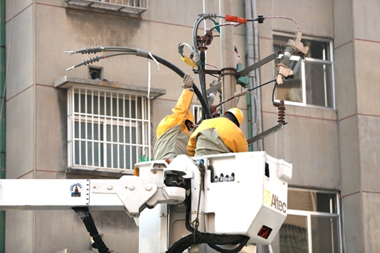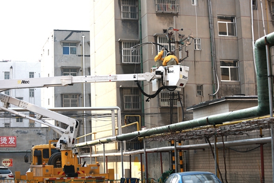 中國(guó)電力網(wǎng)訊 1月6日,濰坊市壽光地區(qū)氣溫出現(xiàn)“斷崖式”下跌,氣溫降至零下17攝氏度。在壽光市圣城街道某小區(qū),國(guó)網(wǎng)壽光市供電公司帶電作業(yè)人員冒著嚴(yán)寒對(duì)10千伏城一線115號(hào)臺(tái)區(qū)帶電更換電纜,進(jìn)一步提升線路安全供電能力,為小區(qū)居民冬季電采暖用電提供堅(jiān)強(qiáng)保障。