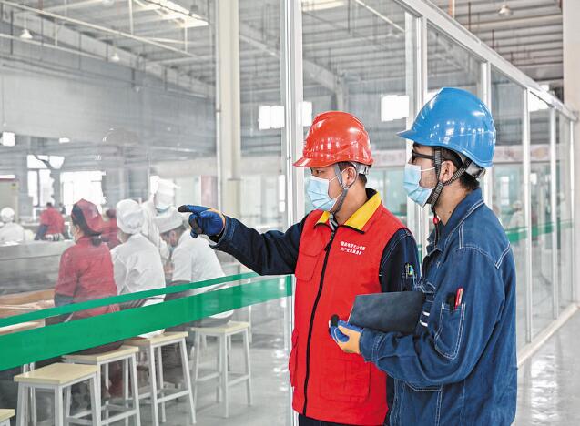 供電員工為企業(yè)檢查生產(chǎn)設(shè)備。攝影:邵琳