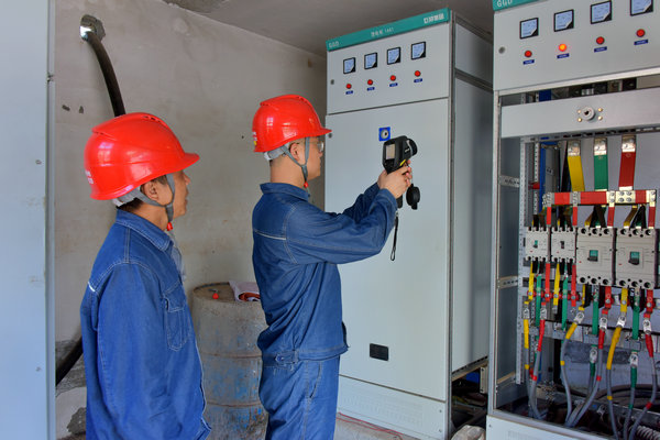 中國電力網(wǎng)訊 6月7日,高考的第一天。在樂安縣高考考點縣城第二中學(xué),國網(wǎng)樂安縣供電公司員工周平、鄧文濤正對設(shè)備進行巡視測溫,確保高考現(xiàn)場可靠供電。