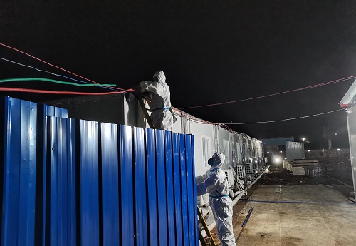 疫情就是命令,防控就是責(zé)任。國(guó)網(wǎng)東安縣供電公司黨委積極部署制定方案,以楊成為首的4名工作人員進(jìn)入防控區(qū)域進(jìn)行作業(yè),著全套防護(hù)服、攜帶登桿、搶修各類(lèi)工具及材料進(jìn)入管控區(qū)域。隨后,工作人員開(kāi)始對(duì)院內(nèi)的變壓器以及用電線(xiàn)路等設(shè)備進(jìn)行全面檢查,為盡快恢復(fù)隔離點(diǎn)供電,從排查電氣、監(jiān)測(cè)漏電保護(hù)器、更換導(dǎo)線(xiàn),大家爭(zhēng)分奪秒。“夜間作業(yè)視線(xiàn)不好,要特別注意安全,要戴好口罩,注意自身的防護(hù)!”楊成叮囑每一位搶修人員,在應(yīng)急搶修燈的照明下,工作人員不敢有絲毫的麻痹大意,嚴(yán)密監(jiān)護(hù)作業(yè)……一道道工序有條不紊地進(jìn)行著,雖然天氣變冷,但是密不透風(fēng)的防護(hù)服和口罩很快便被汗水打濕,他們?cè)谝鼓恢衼?lái)回穿梭,與時(shí)間賽跑,與疫情競(jìng)速,用時(shí)6小時(shí),奮戰(zhàn)到晚上23點(diǎn)圓滿(mǎn)完成緊急供電任務(wù)。