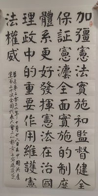 本次活動采取“線上+線下”形式全面開展,以豐富多彩的活動,深入學習宣傳貫徹習近平法治思想和習近平總書記關于憲法的重要論述。本次活動中,組織全處職工積極參加“學習宣傳貫徹黨的二十大精神,推動全面貫徹實施憲法”線上答題活動,共58人參加為期一周的線上答題;組織全體職工觀看烏海市及烏海供電公司普法宣傳視頻2個,營造出尊法學法守法用法的良好法治氛圍;通過樓宇內(nèi)張貼宣傳海報的方式使職工群眾隨時了解憲法知識,實現(xiàn)常態(tài)化普法宣傳,本次張貼憲法宣傳海報共6張;該處職工楊俊芝撰寫普法題材的書法作品1幅,青年職工制作電腦繪畫作品1幅以及隨手拍等,通過不同的方式宣傳學習憲法、民法典、電力法、公司法、中央企業(yè)合規(guī)管理辦法等,鼓勵大家要樹立牢固的法治觀念,成為憲法的自覺遵守者。