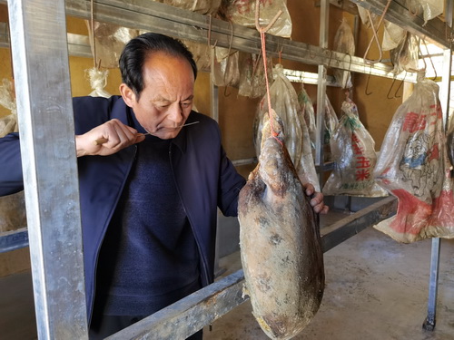 腌制火腿是黎馬村村民傳承已久的儲肉技藝,加上當?shù)鬲毺氐臍夂颦h(huán)境,黎馬火腿形美色艷香糯的獨特品質(zhì)一直在當?shù)匦∮忻麣狻5珕渭覇螒綦缰苹鹜炔还庖?guī)模小,質(zhì)量也參差不齊。黎馬火腿雖然作為當?shù)氐奶厣r(nóng)產(chǎn)品,但一直未能創(chuàng)造出良好的經(jīng)濟價值。如何挖掘黎馬村火腿特色,將鄉(xiāng)村特色轉化為鄉(xiāng)村經(jīng)濟是李華所在的工作隊長期思考的問題。