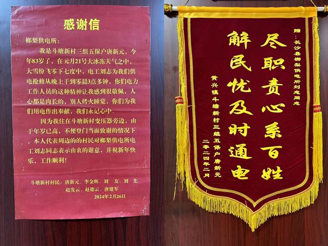 “每隔一段時間,你們就來幫忙檢查我們村高齡及獨居老人家里的線路,謝謝你們,真是辛苦了。”3月1日,斗塘新村83歲的村民唐新元老人將一面錦旗和一封感謝信送到了?梨供電所,以此表達對“電雷鋒”劉志的感激之情。