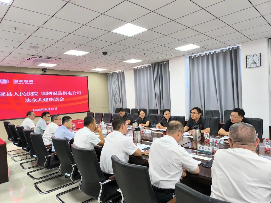 為進一步優(yōu)化法治營商環(huán)境,滿足企業(yè)日益增長的司法需求,8月13日,冠縣法院與國網(wǎng)冠縣供電公司召開法企共建座談會。國網(wǎng)冠縣供電公司黨組書記常增軍、冠縣法院刑庭庭長程敏、民二庭負責人李彥華及相關(guān)人員參加座談。