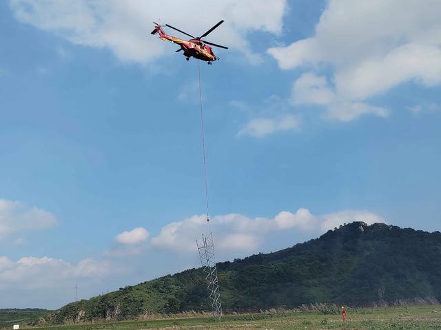 8月24日,國網(wǎng)遼寧省電力有限公司開始拆運(yùn)66千伏朱家線因?yàn)?zāi)受損鐵塔塔材作業(yè)。14時(shí)56分,葫蘆島市建昌縣八家子鎮(zhèn)沙河哨村上空,懸停的一架空客H215直升機(jī)穩(wěn)穩(wěn)升空,事先用鋼絲繩捆綁好的廢舊塔材被牢牢鏈接在吊索的貨鉤上。僅用時(shí)20分,完成當(dāng)天31—34號(hào)4基鐵塔受損塔材拆運(yùn)作業(yè)。
