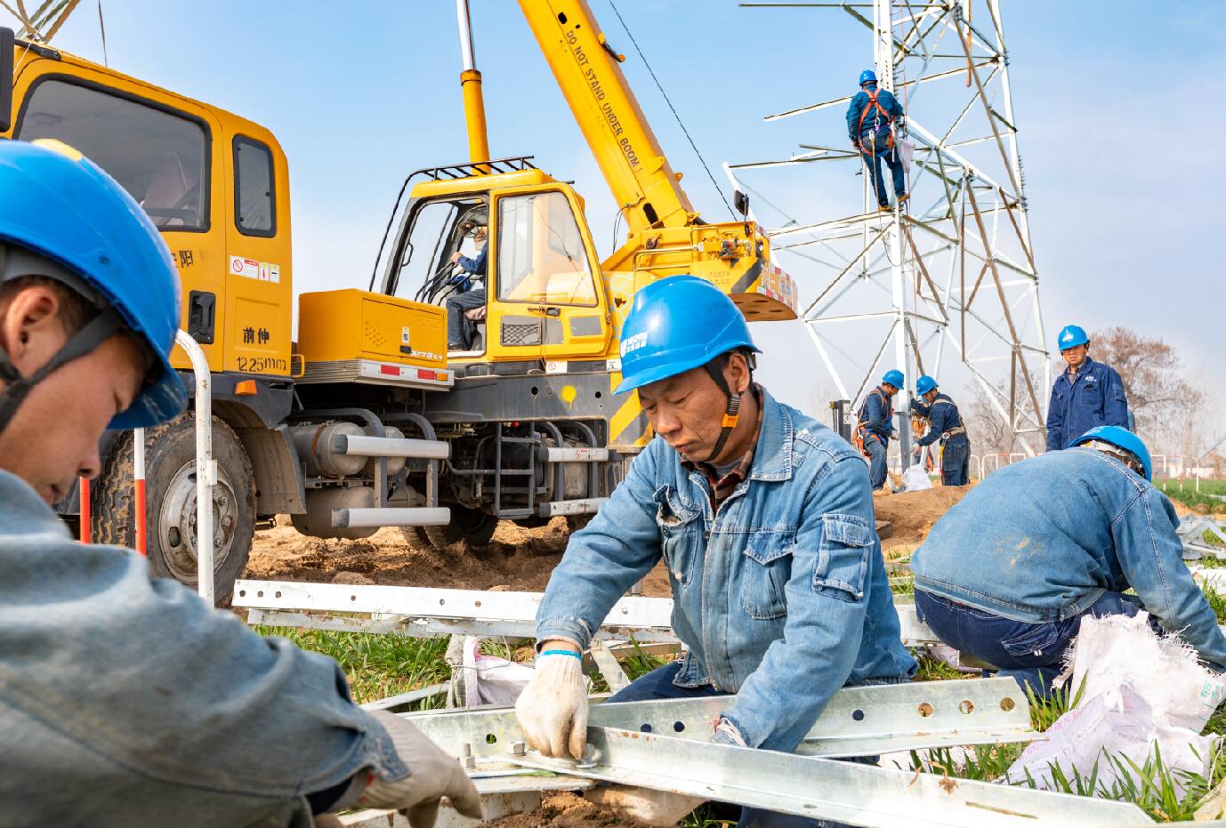 3月12日,在河南滑縣白道口鎮(zhèn)后吾旺村,太陽(yáng)剛出來(lái),麥苗上還掛著晶瑩的露珠。走在麥隴間有種踏春的喜悅,露珠也瞬間浸透了腳上的鞋??聪蚰沁厖s是另一番景象,新建220千伏電力線路跨越高鐵工程正在緊張實(shí)施中?,F(xiàn)場(chǎng)國(guó)網(wǎng)滑縣供電公司的施工人員,早已開始了組立鄭濟(jì)鐵路(滑縣段)第75號(hào)鐵塔,等76號(hào)鐵塔也組裝完后,73號(hào)鐵塔與76號(hào)鐵塔導(dǎo)線放通,鄭濟(jì)鐵路(滑縣段)全線路貫通。為下一步鄭濟(jì)高鐵聯(lián)調(diào)聯(lián)試、試車及最后投入運(yùn)營(yíng)提供可靠電力支撐。