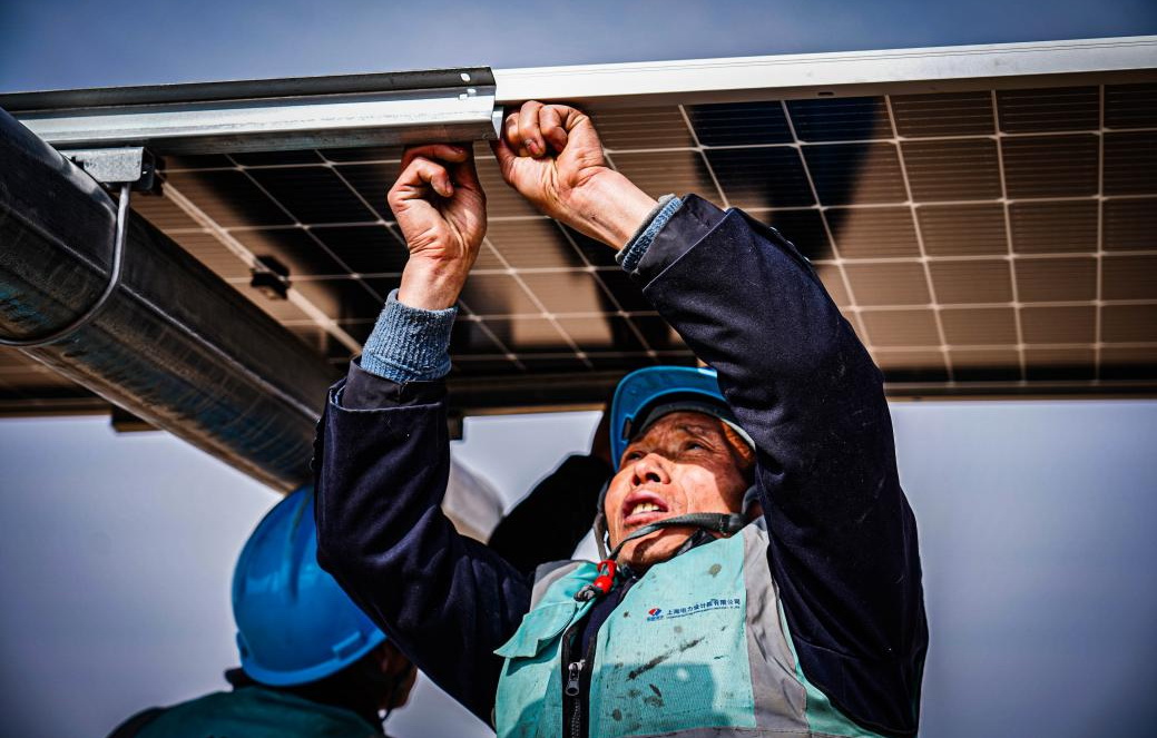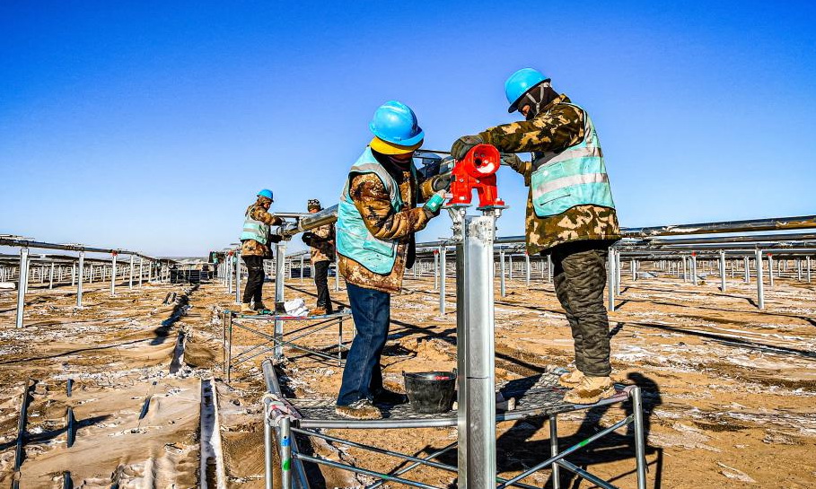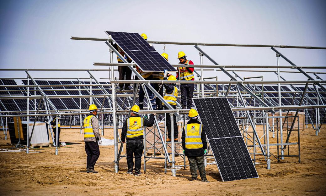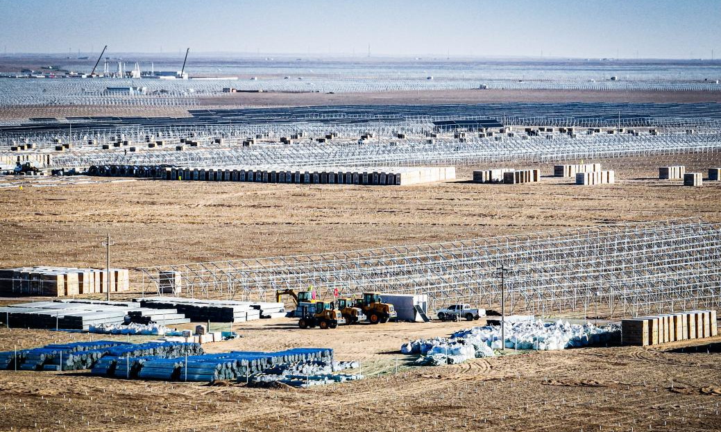 蒙陜寧三省交界的毛烏素沙地腹部,國家能源集團國電電力蒙西鄂爾多斯采煤沉陷區(qū)300萬千瓦光伏基地項目建設(shè)如火如荼。作為國家第二批以沙漠、戈壁、荒漠地區(qū)為重點的大型光伏基地項目之一,10.5萬畝的“光伏海洋”每年將把近57億度綠色電能從蒙西戈壁輸送至黃海之濱,滾滾電流跨越1300多公里長途跋涉,將有效緩解山東這個東部沿海工業(yè)大省的電力缺口,為東部地區(qū)的經(jīng)濟社會發(fā)展提供強大的綠色能源保障。該項目已完成175萬千瓦容量樁基施工,65萬千瓦容量支架施工,25萬千瓦容量組件安裝,1號升壓站已具備并網(wǎng)條件。