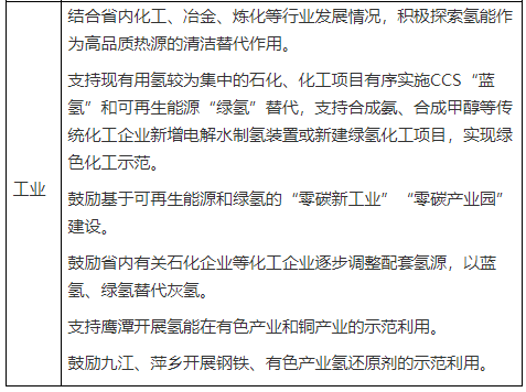 支持鷹潭、萍鄉(xiāng)、景德鎮(zhèn)、宜春等結(jié)合有色產(chǎn)業(yè)、銅產(chǎn)業(yè)集群發(fā)展規(guī)劃和鋼鐵產(chǎn)業(yè)、陶瓷生產(chǎn)綠色轉(zhuǎn)型、鋰電產(chǎn)業(yè)融合等,探索氫能規(guī)?;瘧?yīng)用,推進(jìn)氫冶煉技術(shù)。
