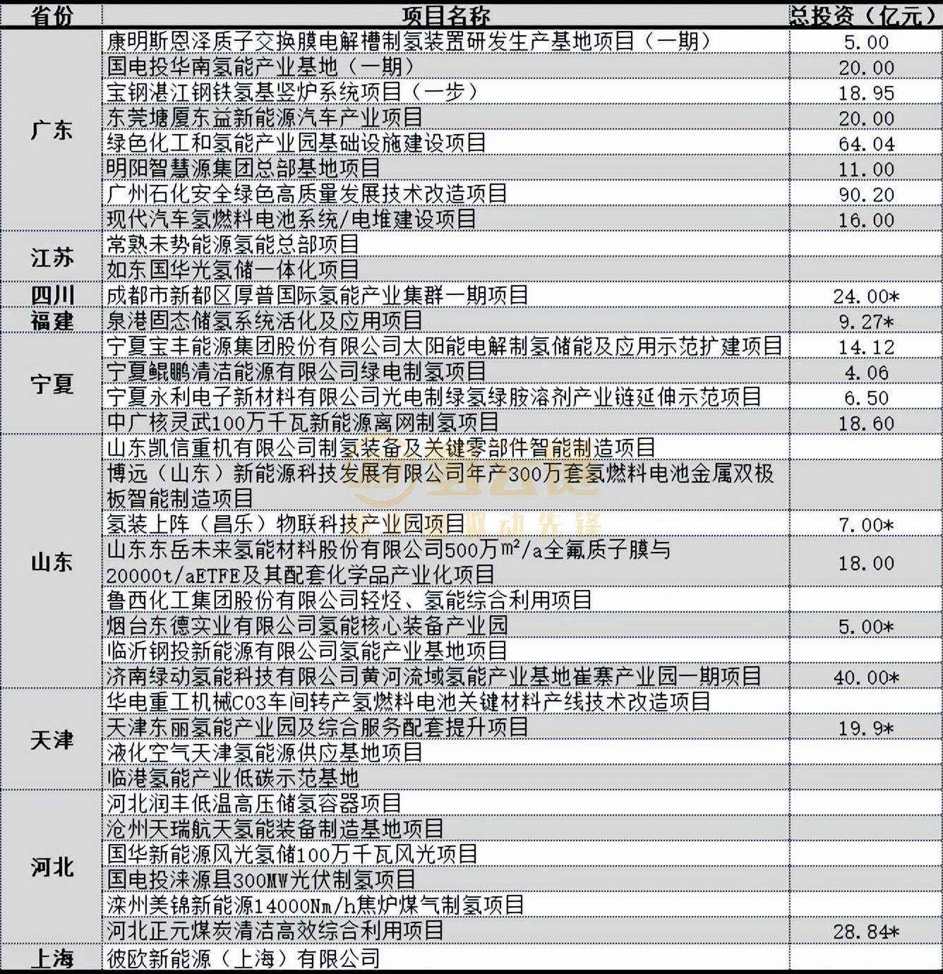 來源:氫云鏈注:帶星號的投資額表示政府未公布但前期項(xiàng)目在媒體公布的投資額