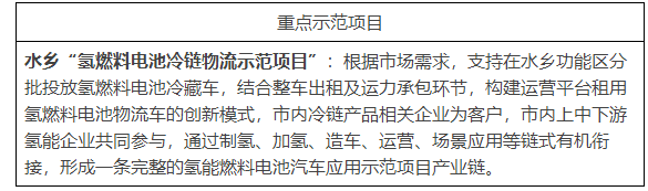 2.有序推進燃料電池汽車示范應(yīng)用。以水鄉(xiāng)“氫燃料電池冷鏈物流示范項目”為推廣試點,支持市屬國有企業(yè)牽頭推動項目落地。以冷鏈物流車、環(huán)衛(wèi)車、重型牽引車等商用車應(yīng)用為突破點和切入點,推進燃料電池汽車在港口、物流園區(qū)、重點產(chǎn)業(yè)園區(qū)等區(qū)域和長途貨運、城市配送、市政環(huán)衛(wèi)、城市建設(shè)等領(lǐng)域示范應(yīng)用,打造大灣區(qū)氫能物流中心和綠色示范港口。