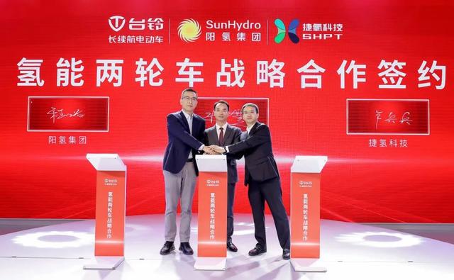 目前,臺(tái)鈴集團(tuán)、陽氫集團(tuán)、捷氫科技三方已經(jīng)簽訂戰(zhàn)略合作簽約,擬聯(lián)合實(shí)現(xiàn)10000輛氫能兩輪車市場化運(yùn)營。