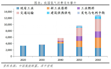 根據(jù)《氫能產(chǎn)業(yè)發(fā)展中長期規(guī)劃(2021-2035 年)》“十四五”時期的發(fā)展目標,燃料電池車輛保有量約5萬輛,部署建設(shè)一批加氫站,可再生能源制氫量達到10-20萬噸/年,實現(xiàn)二氧化碳減排100-200萬噸/年。到2050年,氫氣需求量將接近6000萬噸,實現(xiàn)二氧化碳減排約7億噸,氫能在我國終端能源體系中占比超過10%,產(chǎn)業(yè)鏈年產(chǎn)值達到12萬億元,成為引領(lǐng)經(jīng)濟發(fā)展的新增長極。
