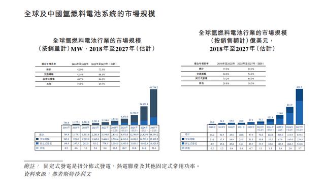 而中國(guó)氫燃料電池行業(yè)的市場(chǎng)規(guī)模也已由2018年的人民幣7億元增至2022年的29億元,復(fù)合年增長(zhǎng)率為41.8%。預(yù)計(jì)將于2027年達(dá)到人民幣293億元。