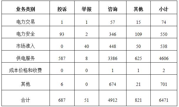 電力行業(yè)投訴舉報(bào)數(shù)量為738件,占全部投訴舉報(bào)數(shù)量的94.25%。反映的主要問(wèn)題有:一是部分地區(qū)受雷雨強(qiáng)風(fēng)等惡劣天氣影響導(dǎo)致故障停電,停電后修復(fù)周期較長(zhǎng);二是部分地區(qū)供電設(shè)施老舊,網(wǎng)架比較薄弱,供電半徑長(zhǎng)、線(xiàn)徑小,導(dǎo)致頻繁停電和低電壓;三是個(gè)別供電企業(yè)工作人員服務(wù)意識(shí)不強(qiáng),影響了群眾正常用電或者辦理涉電業(yè)務(wù);四是部分地區(qū)電力企業(yè)辦理承裝(修、試)電力設(shè)施許可證時(shí),使用非本企業(yè)員工證件,涉嫌提供虛假申請(qǐng)材料。