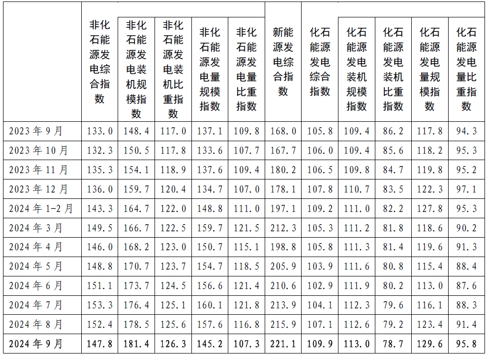 9月,化石能源發(fā)電綜合指數(shù)為109.9,比2020年基期增長了9.9%,同比增長3.9%。其中: