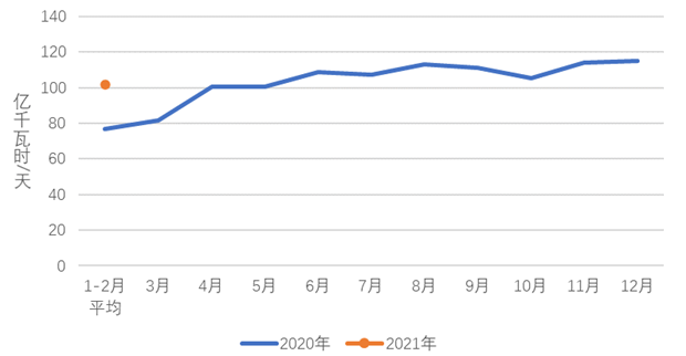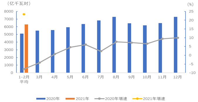 1-2月,全國(guó)全社會(huì)用電量12588億千瓦時(shí),同比增長(zhǎng)22.2%。