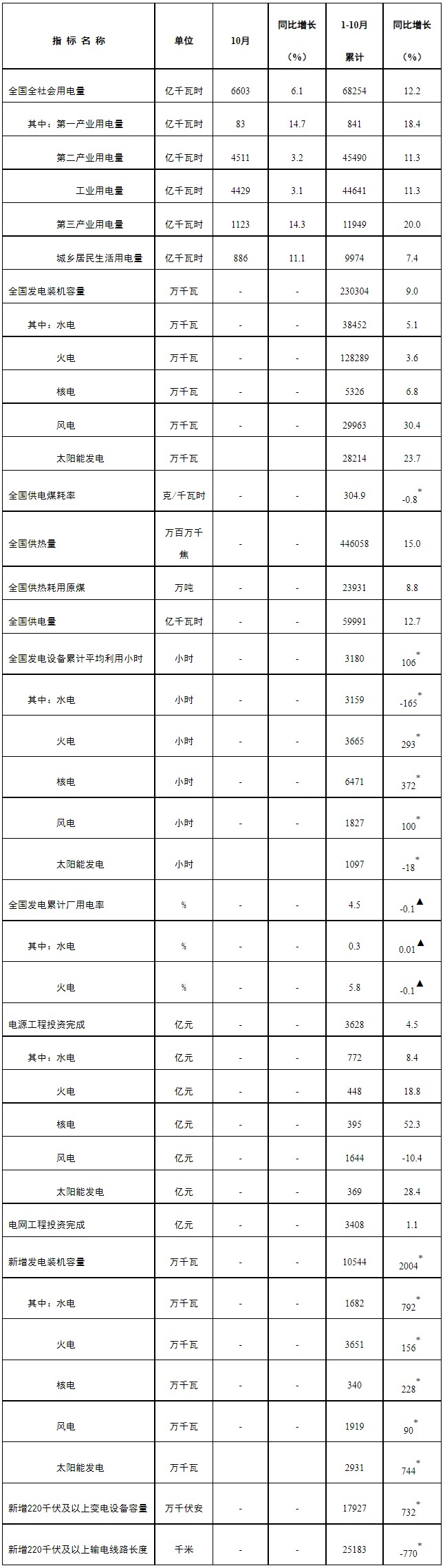 注:1.全社會(huì)用電量為全口徑數(shù)據(jù),全國(guó)供電量為調(diào)度口徑數(shù)據(jù)。2.“同比增長(zhǎng)”列中,標(biāo)*的指標(biāo)為絕對(duì)量;標(biāo)▲的指標(biāo)為百分點(diǎn)。