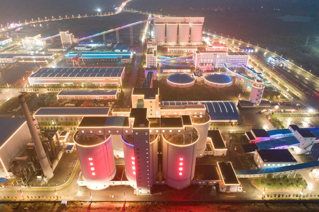 夜幕時分的曹家灘智慧礦山(2021年10月12日攝)。新華社記者 邵瑞 攝