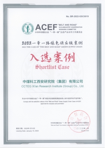 2023年,中國(guó)煤科西安研究院的“推動(dòng)企業(yè)轉(zhuǎn)型升級(jí) 促進(jìn)產(chǎn)業(yè)綠色發(fā)展”案例成功入選“一帶一路”綠色供應(yīng)鏈案例。
