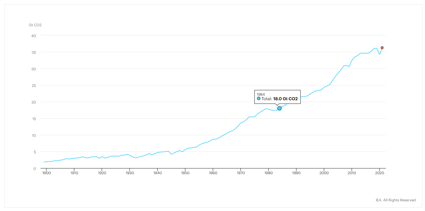 國際能源署的分析顯示,全球二氧化碳排放量的絕對增幅超過20億噸,是歷史上最大的增幅,超過了2020年由大流行引起的下降。