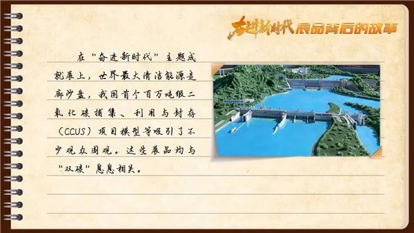 不只是世界最大清潔能源走廊沙盤,位于“奮進新時代”主題成就展中央綜合展區(qū)全面深化改革開放單元的我國首個百萬噸級二氧化碳捕集、利用與封存(CCUS)項目模型等展品,同樣吸引了不少人圍觀。這些展品均與“雙碳”息息相關。