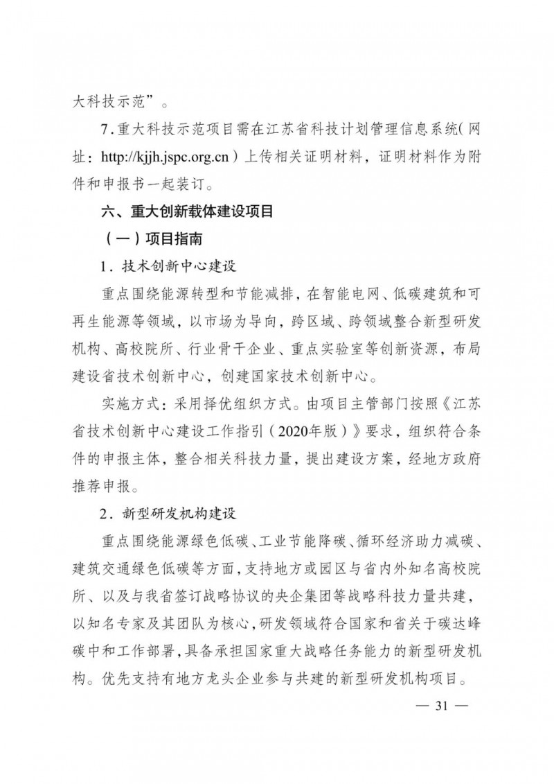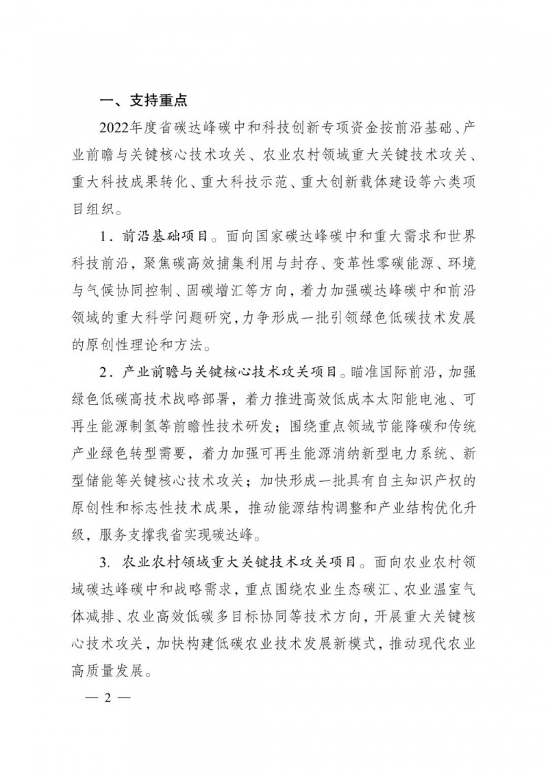 近日,江蘇省科學技術廳及財政廳發(fā)布《2022年度省碳達峰碳中和科技創(chuàng)新專項資金項目指南》。