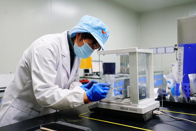 富臨新能源技術(shù)人員對(duì)公司磷酸鐵鋰下一代產(chǎn)品工藝進(jìn)行反復(fù)實(shí)驗(yàn)驗(yàn)證。全媒體記者 何飛 攝