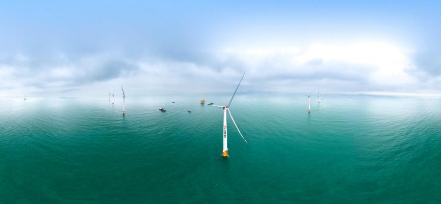珠海金灣海上風(fēng)電項目是粵港澳大灣區(qū)首個建成投產(chǎn)的大容量海上風(fēng)電場,位于金灣區(qū)三灶島南側(cè)、高欄港東側(cè)海域。項目總裝機容量30萬千瓦,每年可輸送綠色電能約7.29億千瓦時,可滿足近100萬珠海市居民一年的生活用電需求。該項目有力提升了地區(qū)清潔能源比例,助力粵港澳大灣區(qū)構(gòu)建清潔低碳、安全高效的能源體系。