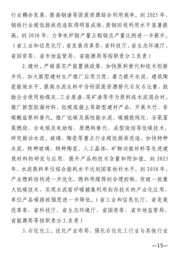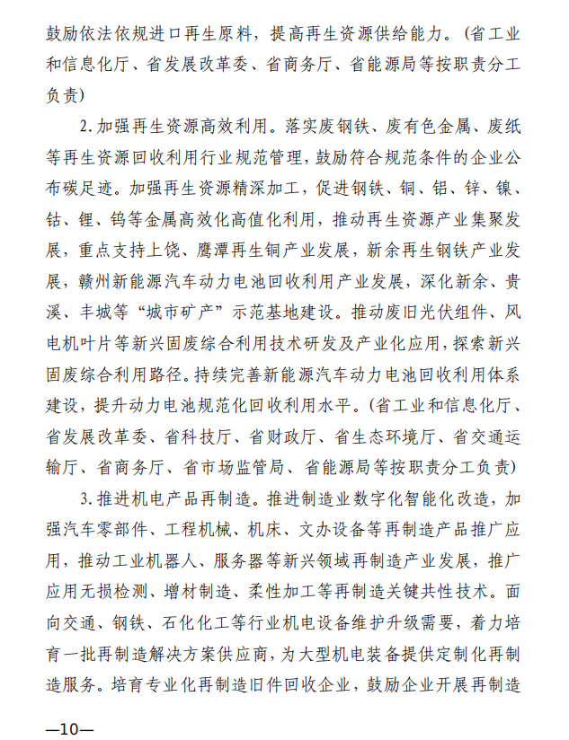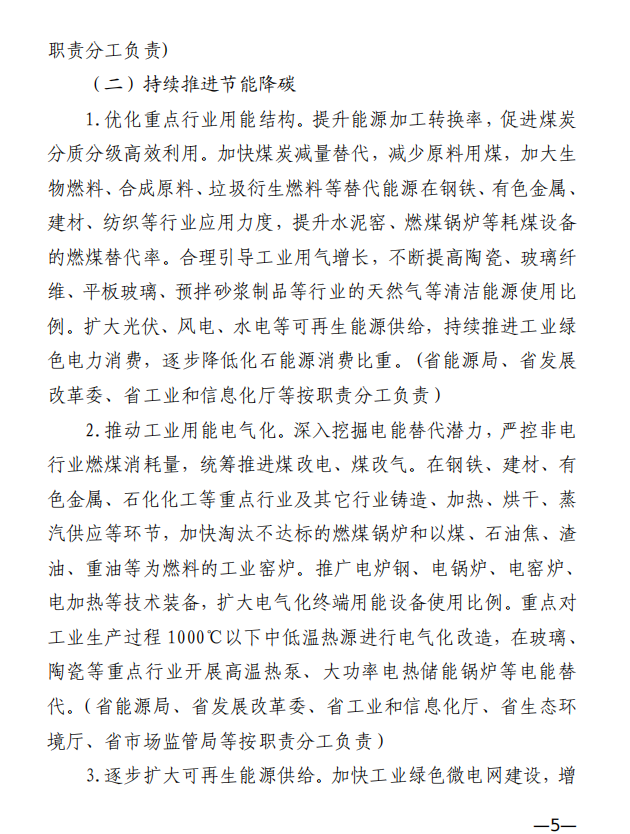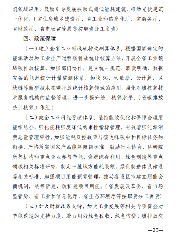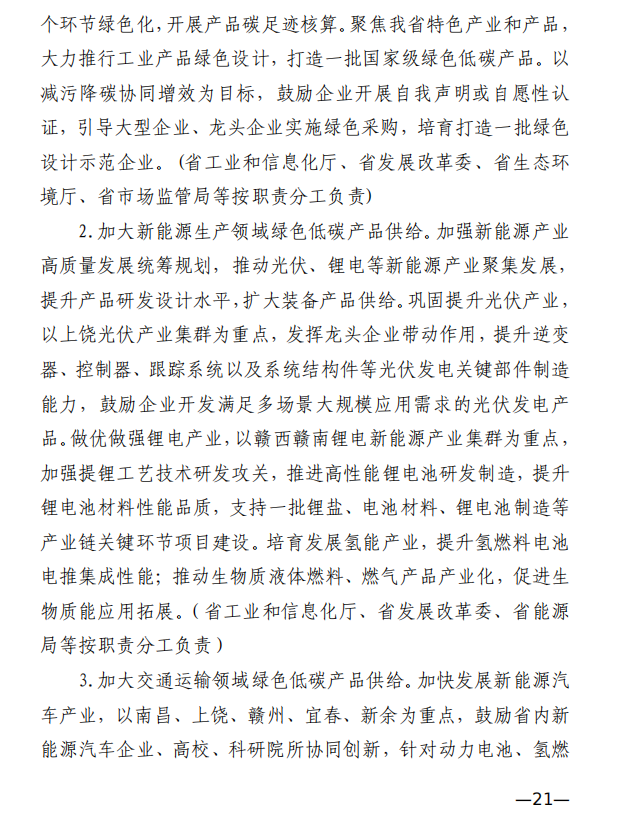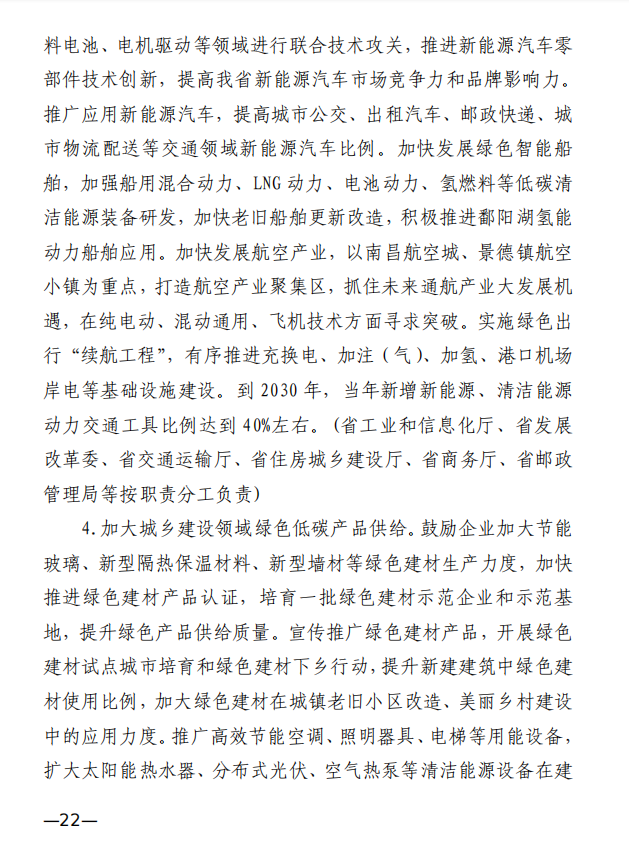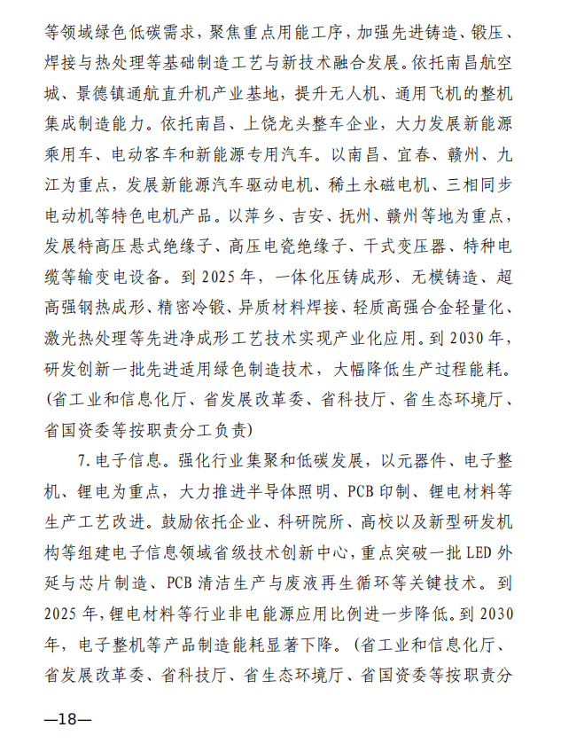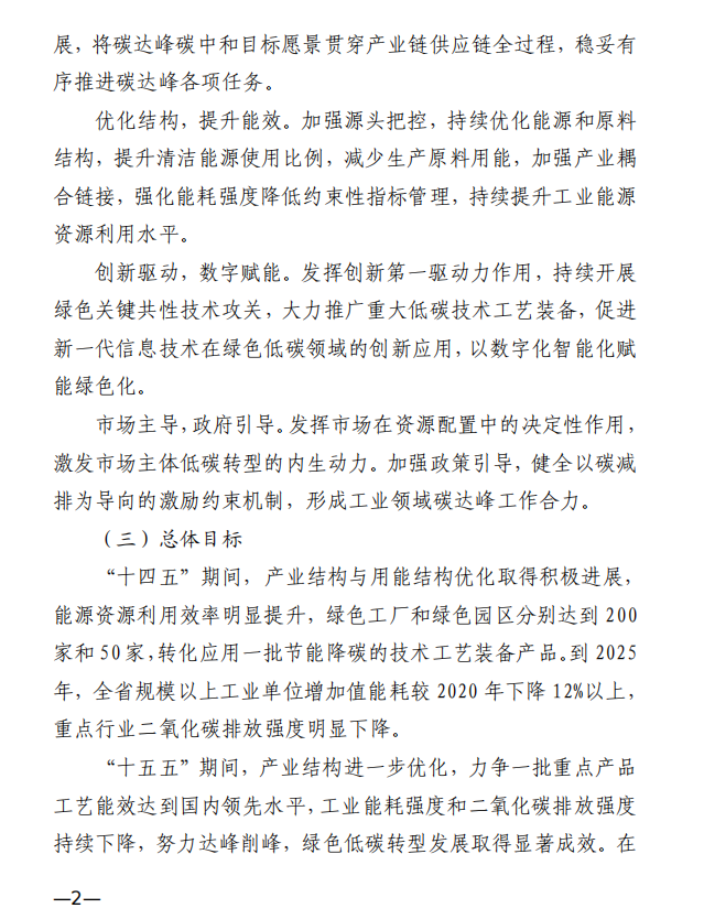 10月10日,江西省工業(yè)和信息化廳、江西省發(fā)展和改革委員會(huì)和江西省生態(tài)環(huán)境廳發(fā)布《關(guān)于印發(fā)江西省工業(yè)領(lǐng)域碳達(dá)峰實(shí)施方案的通知》,《江西省工業(yè)領(lǐng)域碳達(dá)峰實(shí)施方案》提出,“十四五”期間,江西力爭產(chǎn)業(yè)結(jié)構(gòu)與用能結(jié)構(gòu)優(yōu)化取得積極進(jìn)展,能源資源利用效率明顯提升,綠色工廠和綠色園區(qū)分別達(dá)到200家和50家;到2025年,全省規(guī)模以上工業(yè)單位增加值能耗較2020年下降12%以上?!笆逦濉逼陂g,力爭一批重點(diǎn)產(chǎn)品工藝能效達(dá)到國內(nèi)領(lǐng)先水平,基本建立以高效、綠色、循環(huán)、低碳為特征的現(xiàn)代工業(yè)體系;確保工業(yè)領(lǐng)域二氧化碳排放在2030年前達(dá)峰。