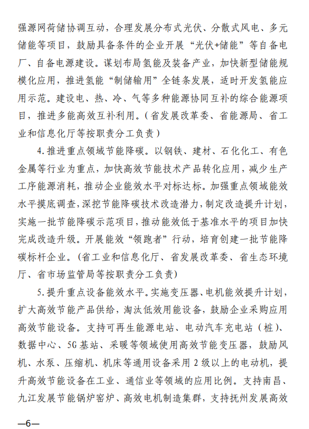 方案提出,逐步擴(kuò)大可再生能源供給。加快工業(yè)綠色微電網(wǎng)建設(shè),增強(qiáng)源網(wǎng)荷儲(chǔ)協(xié)調(diào)互動(dòng),合理發(fā)展分布式光伏、分散式風(fēng)電、多元 儲(chǔ)能等項(xiàng)目,鼓勵(lì)具備條件的企業(yè)開展“光伏+儲(chǔ)能”等自備電廠、自備電源建設(shè)。謀劃布局氫能及裝備產(chǎn)業(yè),加快新型儲(chǔ)能規(guī)?;瘧?yīng)用,推進(jìn)氫能“制儲(chǔ)輸用”全鏈條發(fā)展,適時(shí)開發(fā)氫能應(yīng)用示范。建設(shè)電、熱、冷、氣等多種能源協(xié)同互補(bǔ)的綜合能源項(xiàng)目,推進(jìn)多能高效互補(bǔ)利用。