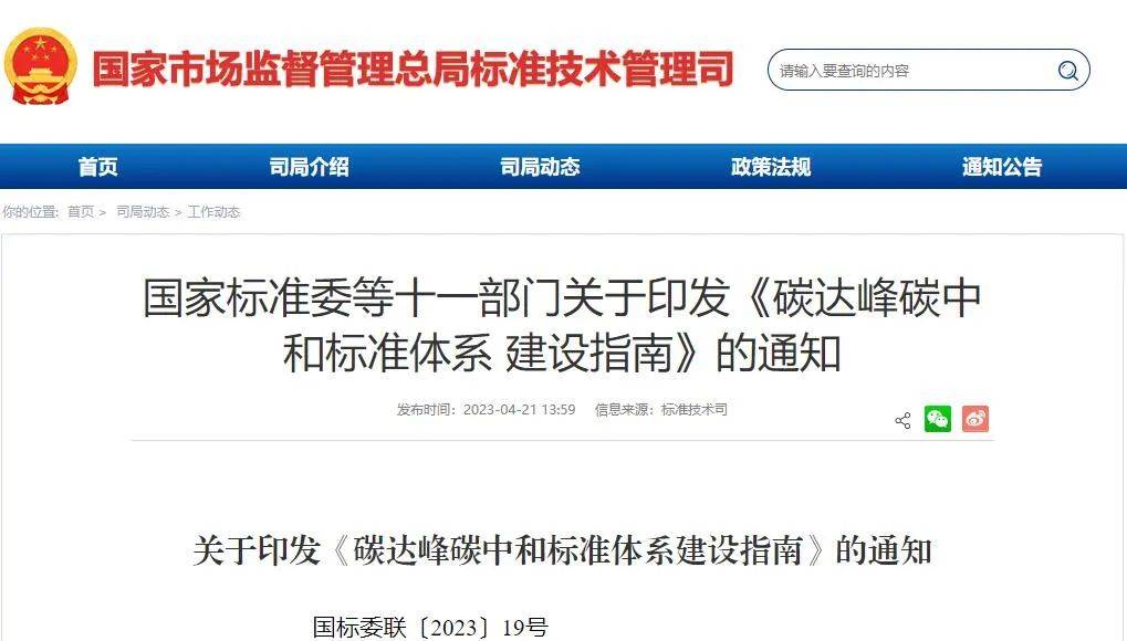 《碳達峰碳中和標準體系建設(shè)指南》已經(jīng)2023年2月6日國務院標準化協(xié)調(diào)推進部際聯(lián)席會議全體會議通過,現(xiàn)印發(fā)給你們,請結(jié)合實際認真貫徹落實。
