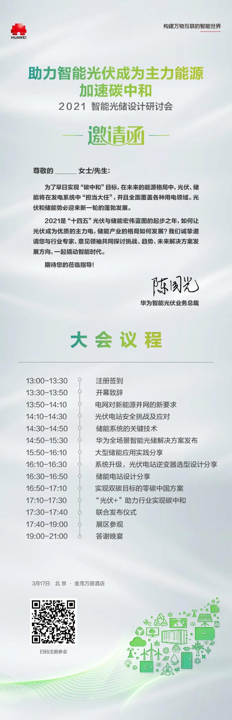 2021是“十四五”光伏與儲(chǔ)能宏偉藍(lán)圖的起步之年,讓光伏發(fā)電可儲(chǔ)可控,已成為能源轉(zhuǎn)型的必然選擇。如何助力智能光伏成為主力能源,促進(jìn)儲(chǔ)能、光伏產(chǎn)業(yè)協(xié)同良性發(fā)展,是實(shí)現(xiàn)我國碳中和目標(biāo)的重中之重。為了盡快迎接零碳時(shí)代的到來,3月17日,2021智能光儲(chǔ)設(shè)計(jì)研討會(huì)即將在北京舉辦,掃描圖片下方二維碼即可報(bào)名參會(huì)!