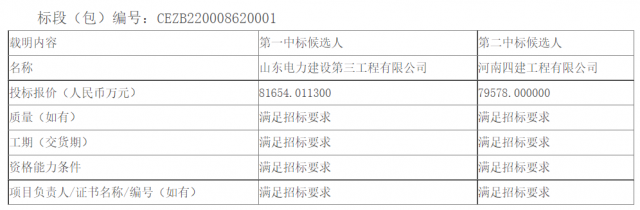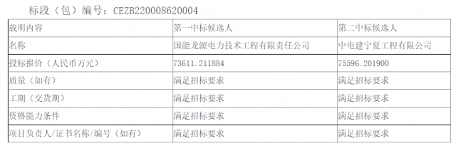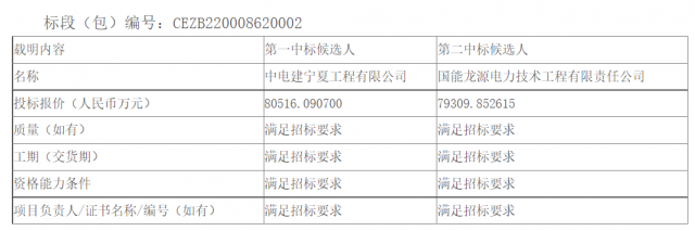 11月3日,龍源電力寧夏龍源公司“寧湘直流”配套新能源基地中衛(wèi)300萬千瓦光伏復合項目(一期100萬千瓦)光伏區(qū)EPC總承包公開招標中標候選人公示,中標結(jié)果如下表所示。