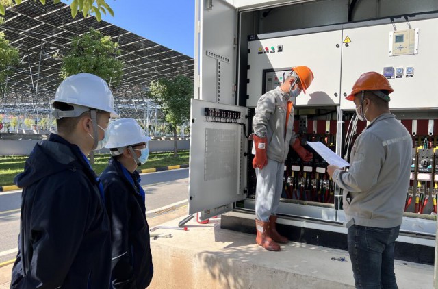 北湖污水處理廠承擔(dān)著半個武昌城的污水處理工作,為了確保光伏電站并網(wǎng)過程中及投運后污水處理廠的正常運營,綠色產(chǎn)業(yè)分公司的技術(shù)攻關(guān)、項目管理、運維保障小組主動擔(dān)當(dāng)作為,與北湖污水處理廠、武漢市供電公司等相關(guān)部門反復(fù)溝通,全程參與發(fā)電站并網(wǎng)方案的制定,以并網(wǎng)發(fā)電期間最大程度降低對污水處理廠運行的影響為目標(biāo),以最短的時間、最優(yōu)的送電方式,最終制定并網(wǎng)發(fā)電實施方案,并保障了光伏并網(wǎng)發(fā)電期間廠區(qū)生產(chǎn)“零影響”。