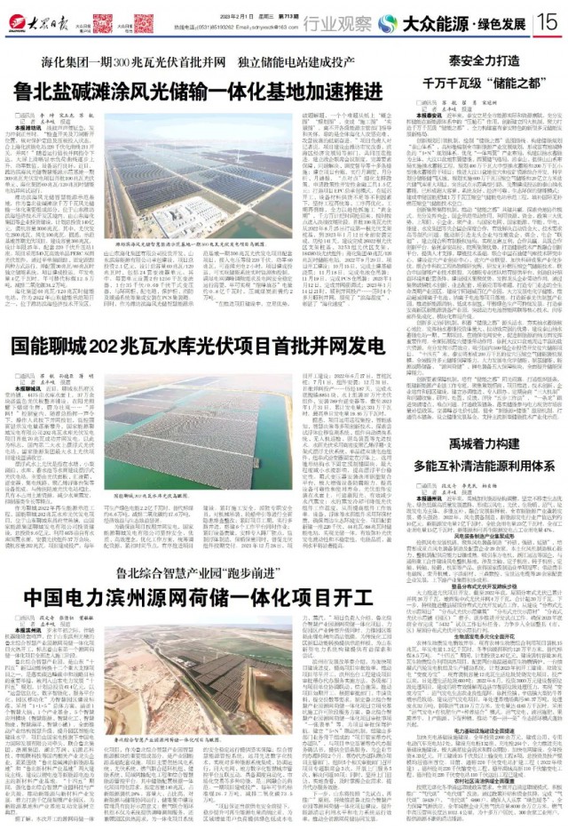 “在推進(jìn)項(xiàng)目建設(shè)中,立足優(yōu)勢,破題解題,一個(gè)個(gè)難題從紙上‘概念圖’‘規(guī)劃圖’,變成‘施工圖’‘實(shí)景圖’,離不開各級能源主管部門指導(dǎo)和關(guān)懷,靠的是全體?;斯?jiān)克難、攻營拔寨的砥礪奮進(jìn)?!表?xiàng)目負(fù)責(zé)人對記者說,項(xiàng)目建設(shè)由濰坊市發(fā)改委、濱海區(qū)經(jīng)濟(jì)發(fā)展局等部門,共同壓茬推進(jìn)。建立政企聯(lián)席會(huì)議制度,完善要素保障、問題解決、調(diào)度督導(dǎo)等十多條措施;建立項(xiàng)目臺(tái)賬,實(shí)行月調(diào)度、月分析、月通報(bào),“點(diǎn)對點(diǎn)”細(xì)化支持政策,申請政策性開發(fā)性金融工具1.5億元;打造項(xiàng)目EPC總承包模式,在延遲開工、設(shè)備材料供貨不足等不利因素下,堅(jiān)持工程再統(tǒng)籌、工序再優(yōu)化、工期再倒排,全力以赴搶抓施工“黃金期”,千方百計(jì)把時(shí)間搶回來,按時(shí)按點(diǎn)進(jìn)入決戰(zhàn)收尾階段。首批100兆瓦光伏從2022年8月25日打設(shè)第一根光伏支架樁基,到2023年1月12日全部安裝完成,歷經(jīng)141天,建設(shè)完成26022根光伏區(qū)支架樁基、3253組光伏區(qū)支架、184380塊光伏組件;?;瘓F(tuán)60兆瓦/120兆瓦時(shí)儲(chǔ)能電站,2022年9月20日,項(xiàng)目開工建設(shè);10月15日,完成土建基礎(chǔ)澆筑;11月18日,完成電池倉吊裝;11月19日,完成PCS倉吊裝;2023年1月12日,完成并網(wǎng)前調(diào)試;2023年1月14日21時(shí),順利并網(wǎng)投產(chǎn)……歷時(shí)4個(gè)多月順利并網(wǎng),展現(xiàn)了“濱海溫度”、彰顯了“海化速度”。