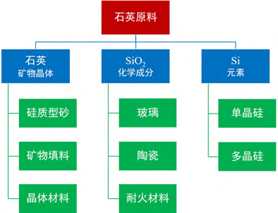 石英礦物原料工業(yè)應(yīng)用的三種形式與應(yīng)用實(shí)例示意圖