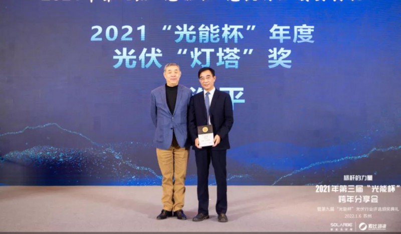 1月6日,備受矚目的2021年“光能杯”評(píng)選活動(dòng)在蘇州盛大開啟,中環(huán)股份副董事長(zhǎng)兼總經(jīng)理沈浩平先生被授予2021年度“光能杯”光伏“燈塔獎(jiǎng)”,國(guó)家應(yīng)對(duì)氣候變化戰(zhàn)略研究和國(guó)際合作中心首任主任李俊峰先生為其現(xiàn)場(chǎng)頒獎(jiǎng)。