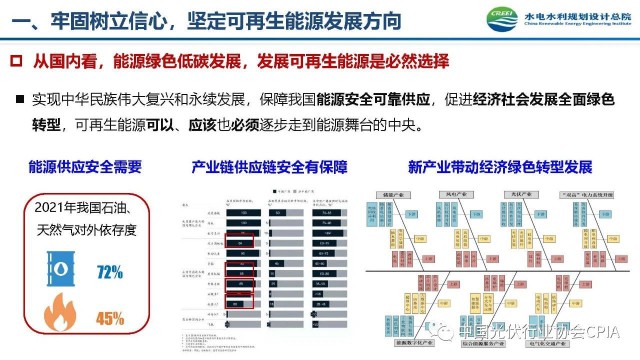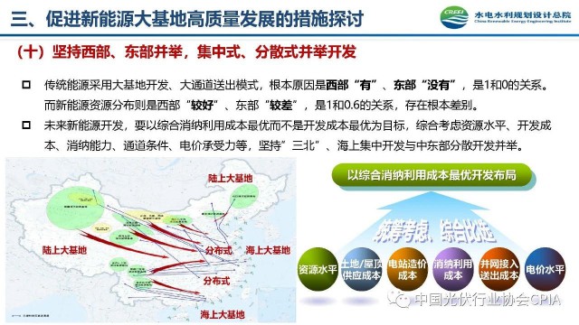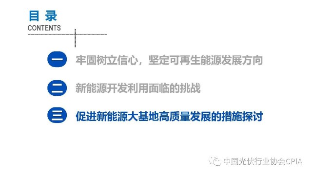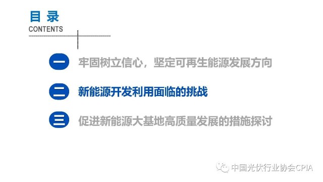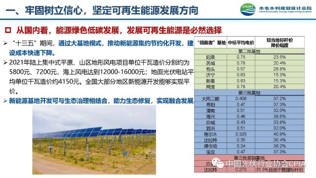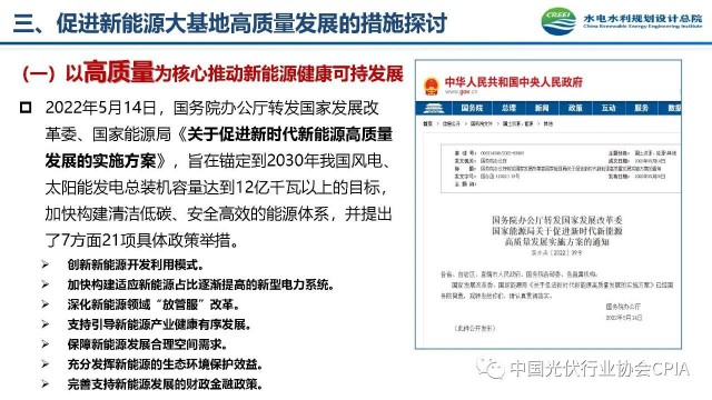 2022年12月1日,由中國光伏行業(yè)協(xié)會主辦的2022中國光伏行業(yè)年度大會暨(滁州)光伏高質(zhì)量發(fā)展高峰論壇在安徽滁州成功召開。水電水利規(guī)劃設(shè)計總院新能源部副主任王躍峰作多措并舉促進(jìn)新能源大基地高質(zhì)量建設(shè)與發(fā)展的報告。王主任指出了新能源開發(fā)面臨的五點挑戰(zhàn),并提出了促進(jìn)新能源大基地高質(zhì)量發(fā)展的十條措施。