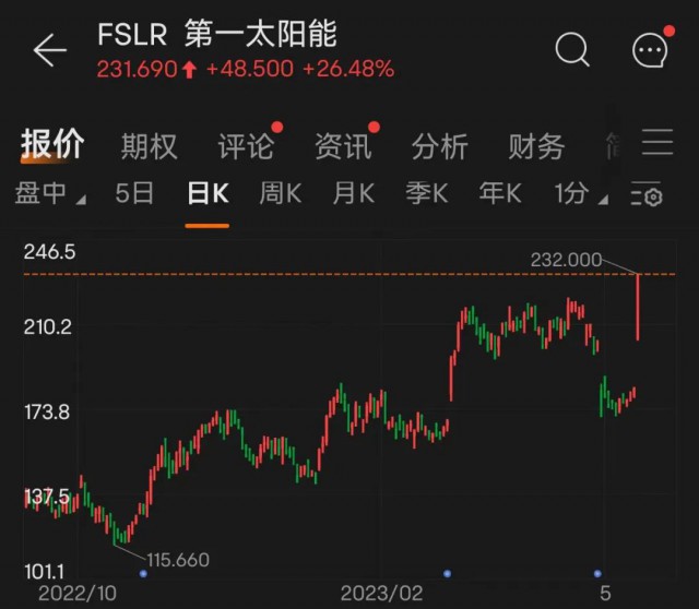 5月12日,美國第一太陽能(First Solar)受一樁并購案影響,暴漲26.48%。今年以來,第一太陽能的股價累計漲幅已超過50%。不知道他們的后續(xù),會不會發(fā)生“鈣鈦礦大神”的奇葩故事。