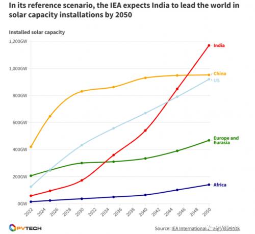 美國(guó)EIA預(yù)計(jì),至2050年,印度的太陽(yáng)能裝機(jī)容量將居世界首位