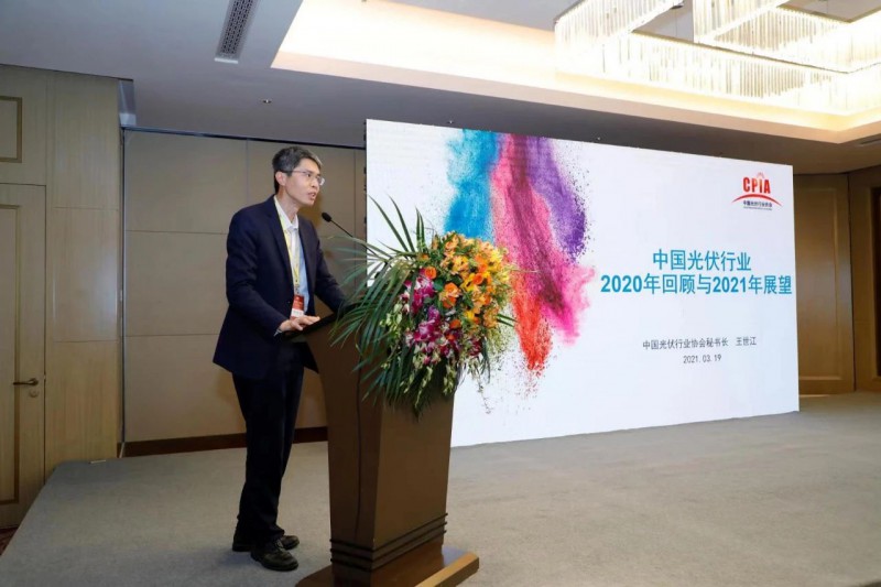 論壇上,中國光伏行業(yè)協(xié)會王世江秘書長做了題為《2020年中國光伏行業(yè)回顧和2021年中國光伏行業(yè)展望》的主題演講。王秘書長指出,2020年,國內(nèi)光伏電站裝機(jī)規(guī)模持續(xù)提升,投資成本繼續(xù)下降,產(chǎn)業(yè)集中度快速提升,技術(shù)不斷發(fā)展,融資規(guī)模不斷擴(kuò)大,國際化布局不斷加強(qiáng);展望2021年,全球光伏市場規(guī)模將加速擴(kuò)大,源網(wǎng)荷儲一體化和多能互補(bǔ)大基地將成為電站開發(fā)關(guān)注熱點(diǎn),技術(shù)快速迭代,行業(yè)將迎來擴(kuò)產(chǎn)潮,“光伏+”模式帶來更多應(yīng)用可能性,預(yù)計(jì)光伏將占據(jù)可再生能源增量市場半壁江山。